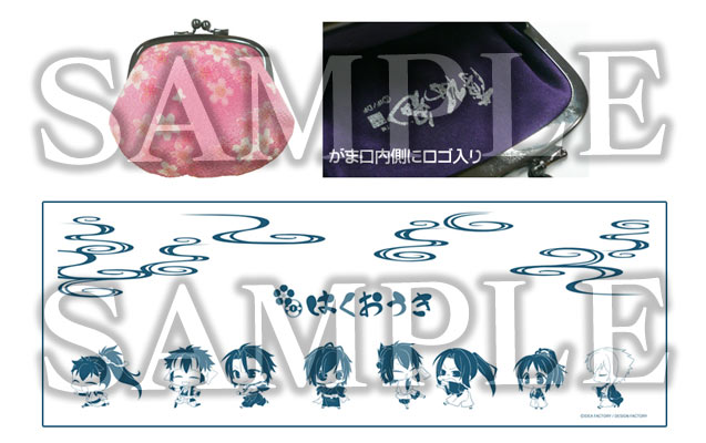 販売場所:新宿マルイワン、コミックマーケット78 薄桜鬼らしい和柄生地を使用したがま口財布と、チビキャラのイラストをプリントした手ぬぐいがセットになりました。 |